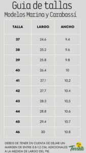 Recuerda que para elegir correctamente tu talla de las Terreta Marina Salvaje Leo, necesitas sumar entre 0.8 y 1.2 mm a las medidas del pie más grande.